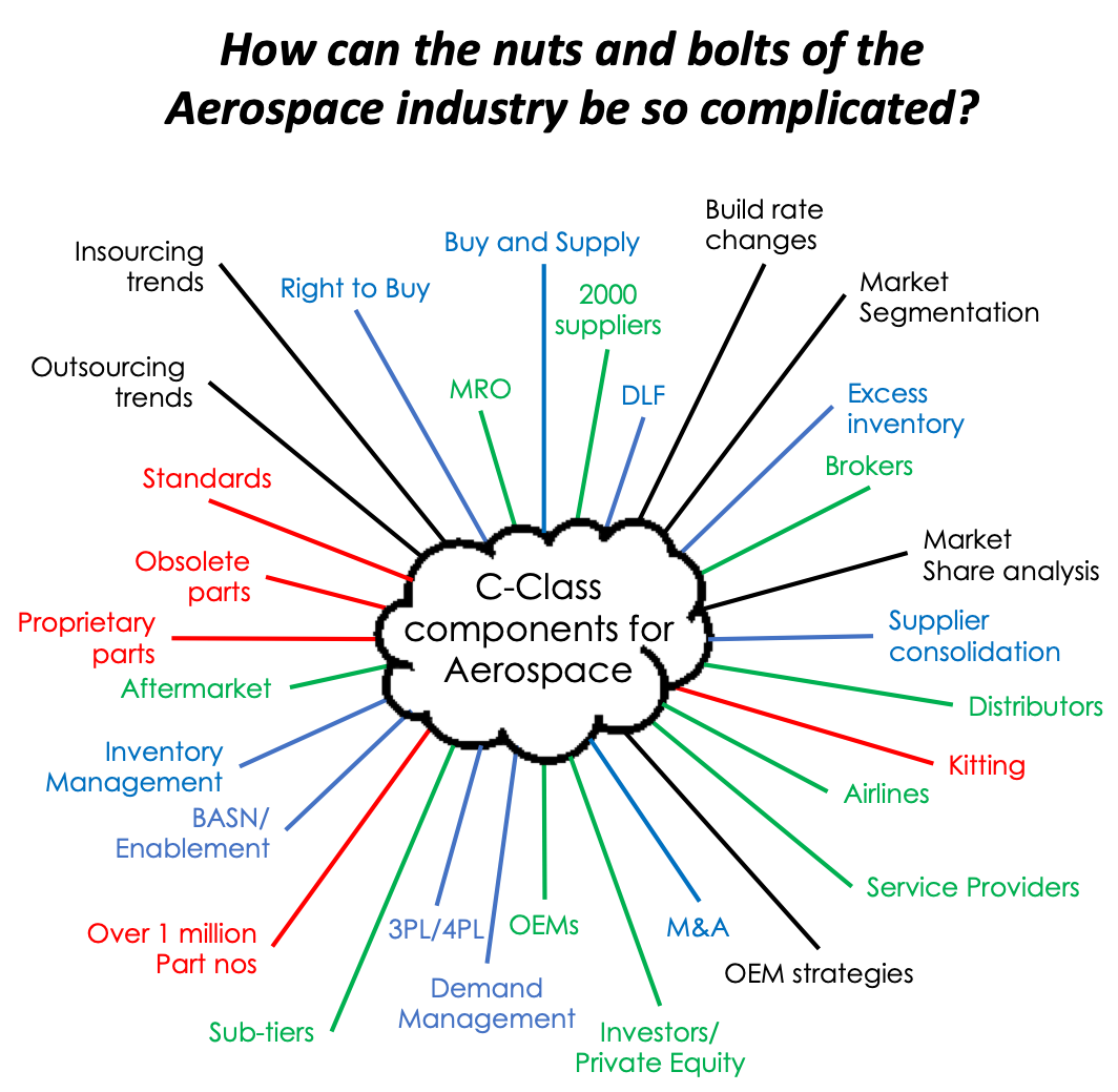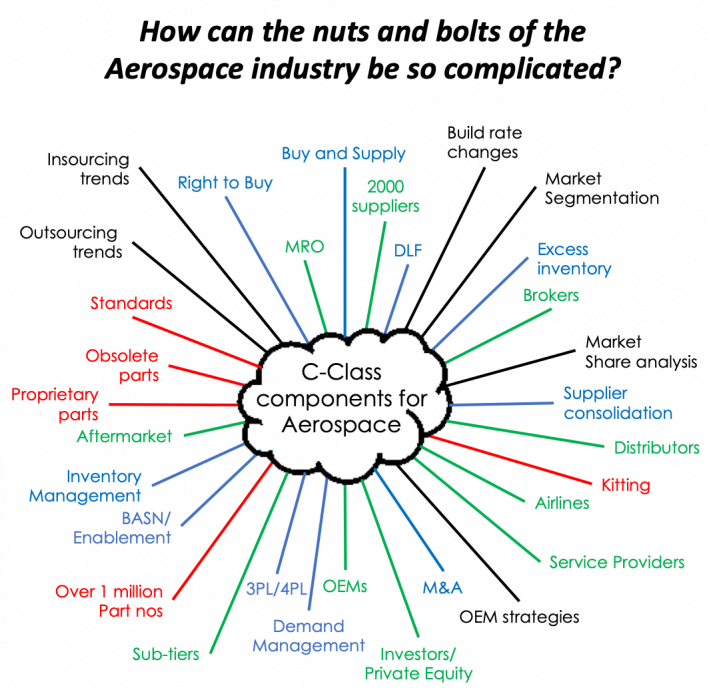 The complexity of the supply chain relative to low value/high volume components effects each player in the market in a different way. An investor may view the sector as an opportunity, providing barriers to entry and attractive, steady year over year growth since the 1950’s. An OEM would see the risk of crucial but low value parts, if not managed correctly, stopping the production of the world’s largest aircraft. The distributor would prioritise its working capital utilisation and margin opportunity while the manufacturer of C-Class parts will continue to look for production efficiency and economic lot manufacturing whilst innovating and developing new proprietary products.
