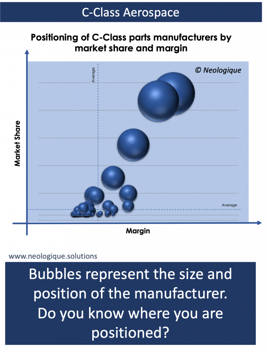 If you want to know more about the C-Class aerospace markets, the sectors, the supply chain, the players, their market shares, the products, M&A opportunities, outsourcing evolution or any other related topic, get in touch with Neologique today.